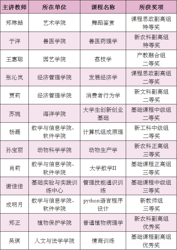 华农教师在全省高校教师教学创新大赛斩获2项特等奖
