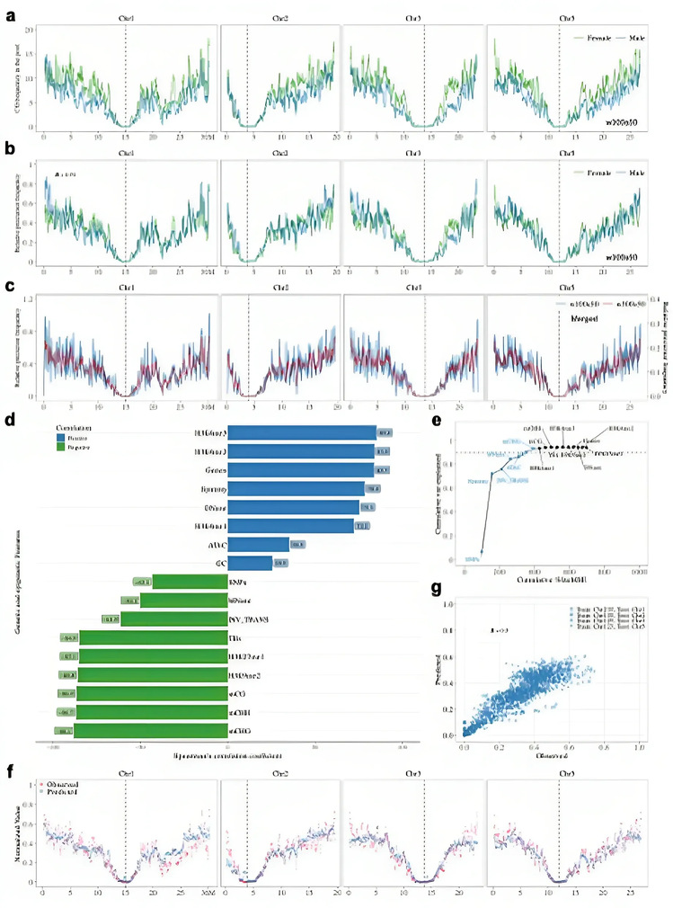 在多个高重组背景下,研究人员整合约5万个重组事件发现,雌雄CO分布几乎完全一致,均富集于染色体臂远端,打破了野生型中存在的性别差异。基于此,研究提出“重组潜力”(Crossover Potential, COP)概念,指在解除调控后,基因组区域形成CO的内在能力,独立于性别及调控因子。进一步分析显示,COP分布与染色质开放性、活跃组蛋白修饰等特征呈正相关,与DNA甲基化、异染色质等负相关。基于7个关键表观组和序列特征构建的机器学习模型可解释93%的COP变异,表明其具有高度可预测性,且主要由染色体局部序列组成及染色质状态决定,为重组精准调控与预测建模提供了理论与方法基础