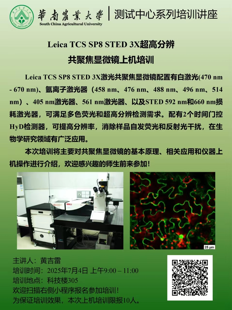 测试中心系列培训讲座(2025年第8期):Leica TCS SP8 STED 3X超高分辨共聚焦显微镜上机培训