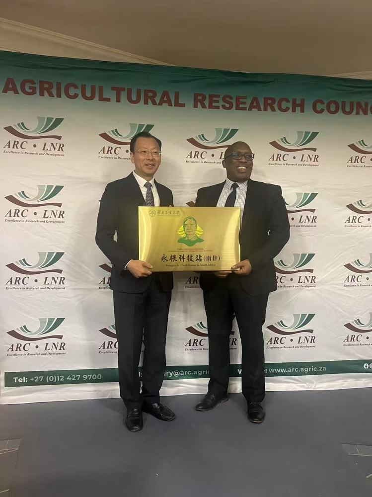 李凤亮与南非农业研究委员会首席执行官共同为“永根科技站”揭牌