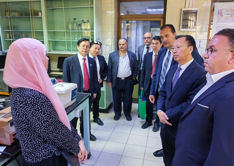 在埃及农业研究中心(Agriculture Research Center, ARC),代表团与埃及农业与土地开垦部部长助理兼官方发言人Dr. Mohamed EI Kersh、埃及农业研究中心副主席Dr. Shireen Kamal Assem及阿拉伯数字经济联盟(ADEA)副秘书长Dr. Ayman Ghonein等举行高级别会谈,并参观了埃及农业研究中心下属的土壤、水和环境研究所、区域食品与饲料研究中心、农业遗传工程研究所等机构及其相关实验室。我校与上述三方围绕共建“中阿数字农业与绿色低碳技术联合实验室”“中阿跨境农业电商示范平台”“中阿农业科技教育创新联盟”“中埃农业大数据平台”,开展旱区农业、数字土壤、智慧灌溉、食品安全、农业智库研究与决策支持等领域的科技创新联合研究,以及加强“中文+数字经济”复合型人才培养等方面达成初步共识。