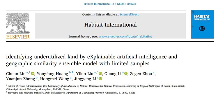 近日,公共管理学院土地资源管理系副教授刘轶伦课题组在国家自然科学基金等项目的资助下,在城市更新领域取得重要突破,创新性地构建了城镇低效用地识别模型。相关成果在《Habitat International》(中科院一区Top期刊,影响因子7.0)发表。
