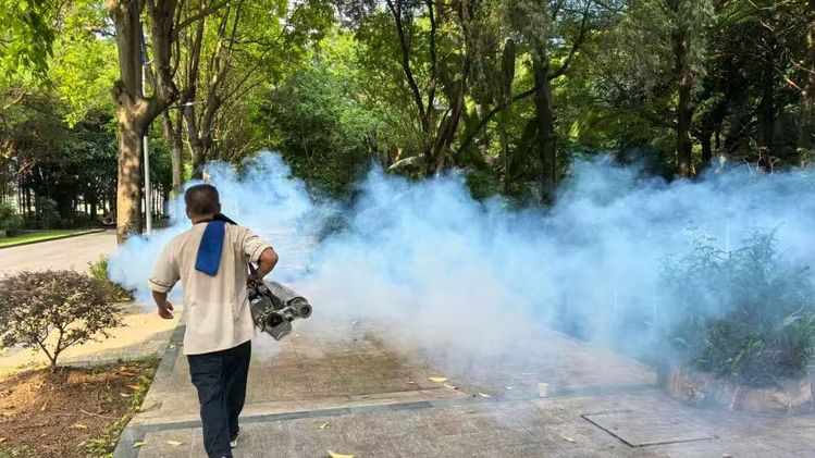 消杀环节中,专业队伍使用用菊酯类药剂对公共厕所、垃圾收集点等蚊虫聚集区全方位喷洒;总务部联合相关部门对校园道路、绿化带、下水道沟渠实施滞留喷洒,对成蚊密集区采用热烟雾灭蚊;同时公共区域布放灭蚊灯,统一发放灭蚊片,确保“防蚊灭蚊无死角”。