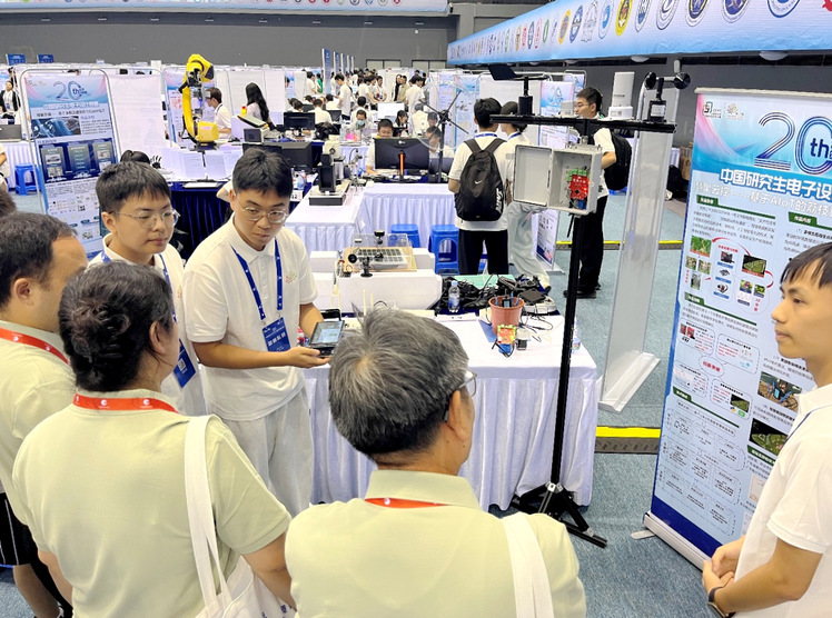 在中国大学生计算机设计大赛国赛现场,由李震、吕石磊指导,曾启轩、陈锐坤、金宇扬完成的《面向水果自动分级的柚子智能调向系统》,展示了人工智能在农业生产中的深度应用,获挑战赛二等奖;张宇、梁耀明指导,韦文正、黄志华、古欣彤、梁咏诗、吴梦菲完成的《智护银龄——基于改进型ST-GCN的实时跌倒检测及救援系统》体现了AI技术在健康监护领域的创新探索,获实践赛三等奖。在研电赛国赛现场,谢家兴、张忠伟指导,陈立业、吴家涛、曹钺完成的《慧果云控——基于AIoT的荔枝智慧果园系统》,聚焦果园智慧管控与决策领域难题,凭借创新解决方案,获二等奖。