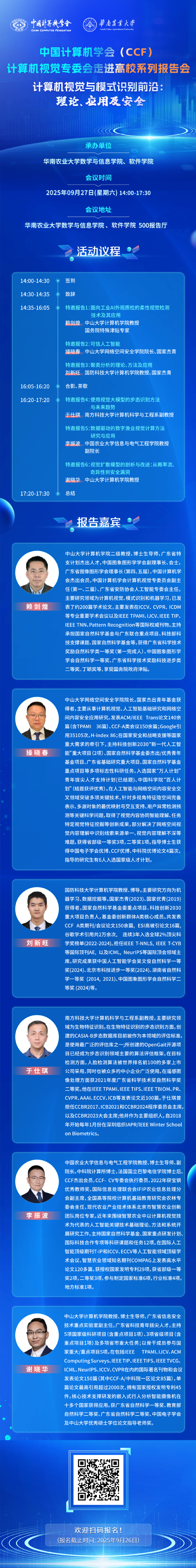 数学与信息学院、软件学院将举办中国计算机学会计算机视觉专委会走进高校系列报告会