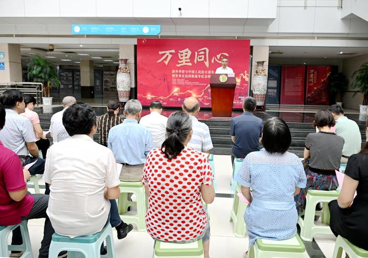 9月25日上午,“万里同心——海外华侨与中国人民抗日战争暨世界反法西斯战争纪念特展”图片巡展在学校图书馆一楼展厅举行。广东省侨联党组成员、副主席林健,学校党委常委、副校长、校侨联主席陈乐天出席仪式并致辞。
