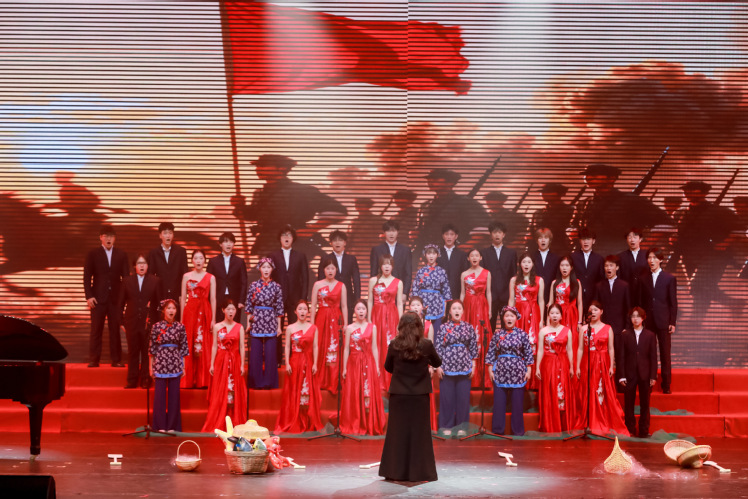 《搭船仔》是传唱于岭南侨乡的传统民歌,承载着深厚的乡土文化,寄托着海外游子对故土的思念与情感纽带。《旗正飘飘》是抗战时期的一首爱国合唱作品,旋律庄严高昂、气势恢宏,展现出民族危亡之际中国人民不屈不挠的精神力量。两首合唱曲目均由我校侨联会员、艺术学院教师李乐指导并指挥演唱,曲目与活动主题高度契合,表演水平高,引起现场观众的共鸣。