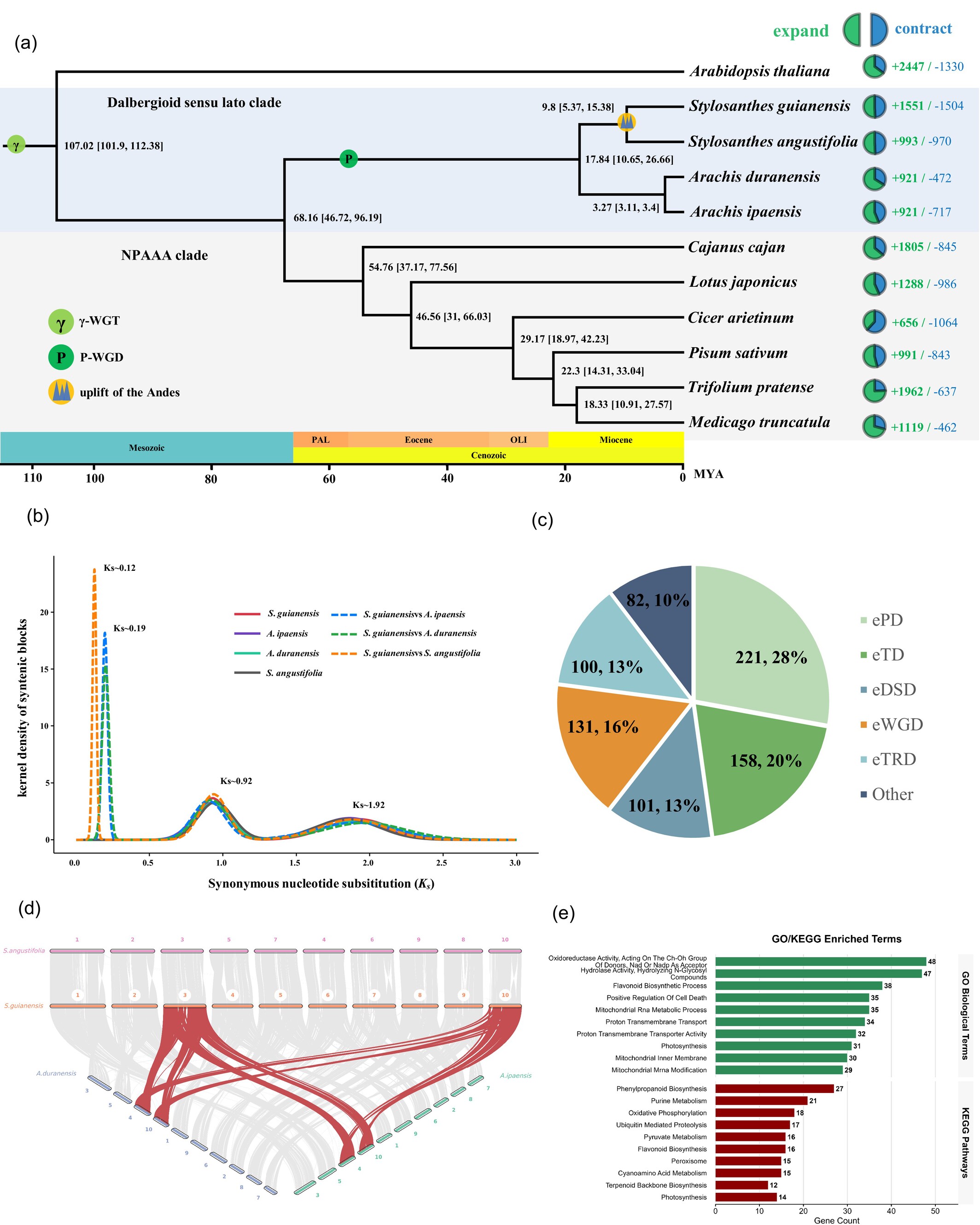 近日,林学与风景园林学院陈曙团队在The Plant Journal期刊发表题为“The chromosome-level genome of Stylosanthes guianensis provides insights into genome evolution and environmental adaptation”的论文。该研究成功完成首个圭亚那柱花草染色体水平基因组组装,从基因组、转录组及表观遗传组多维度解析其抗逆分子机制,为热带牧草分子育种与抗逆研究提供关键理论支撑与基因资源。作为我国南方重要的豆科牧草,圭亚那柱花草有着“热带苜蓿”的美誉,而“北有苜蓿,南有柱花草”草业格局的逐步形成,更凸显了其在我国草地畜牧业与生态农业系统中的核心地位。