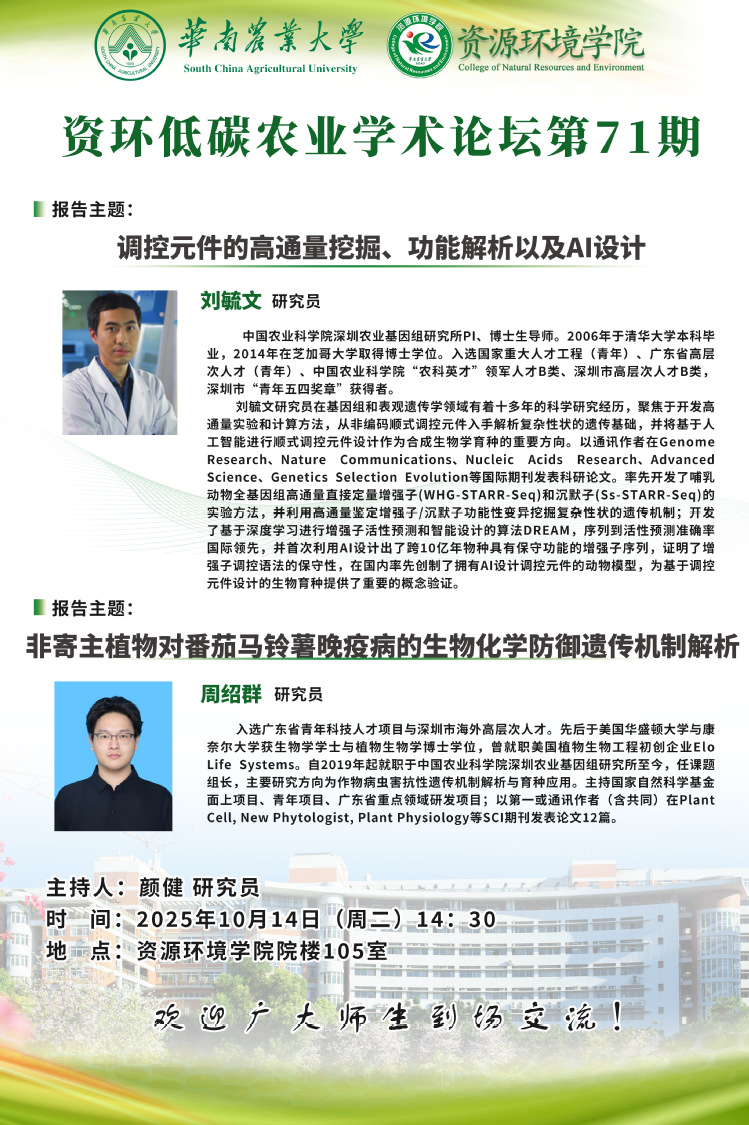 关于举办广东中衡山论坛•华南农业大学紫荆科技创新交叉论坛暨植保学科高质量发展论坛的通知