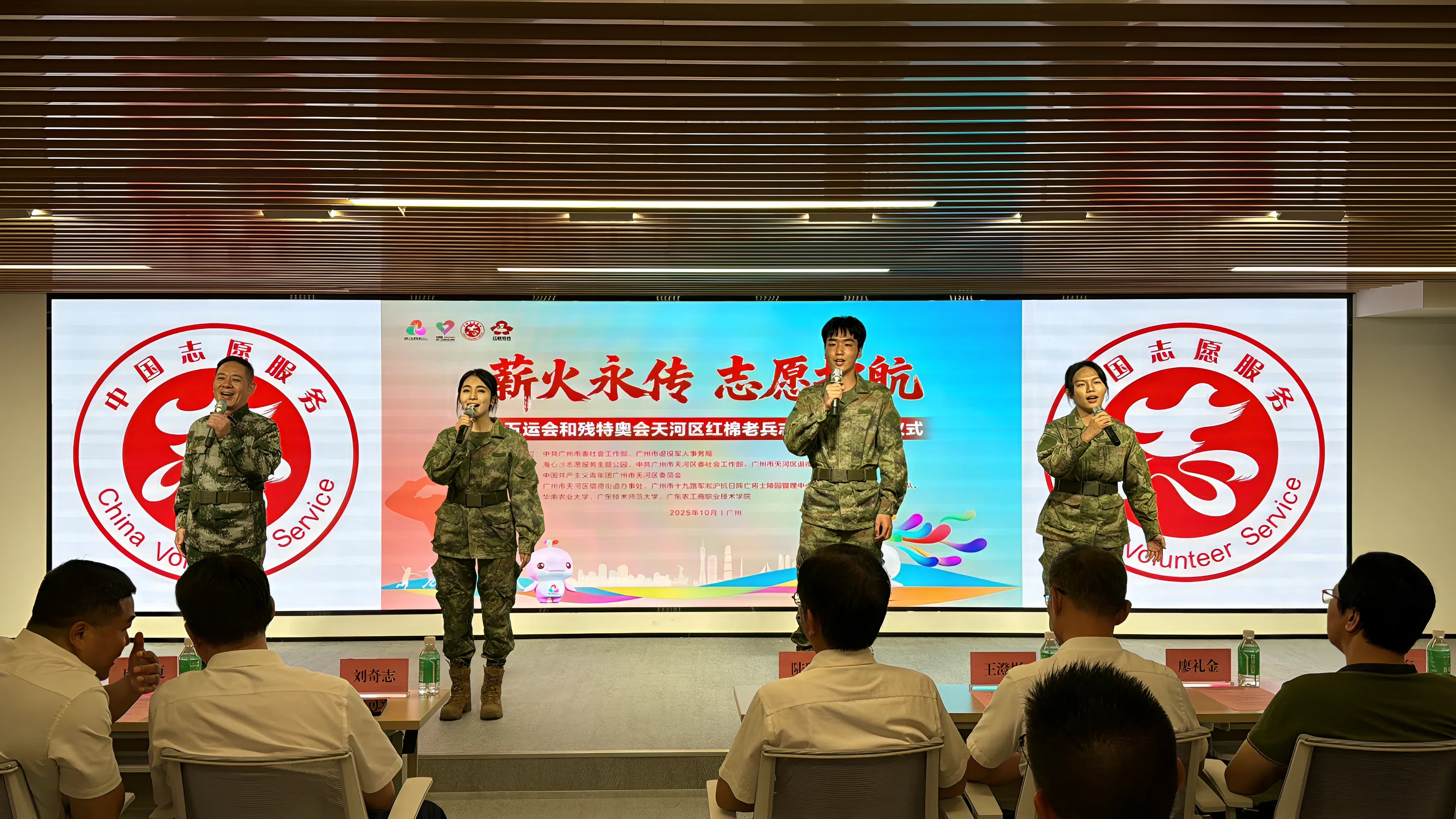 10月11日,“薪火永传·志愿护航”——十五运会和残特奥会天河区红棉老兵志愿服务启动仪式在海心沙志愿服务主题公园举行。我校红棉老兵志愿服务队获授旗,艺术学院学子为活动献唱。