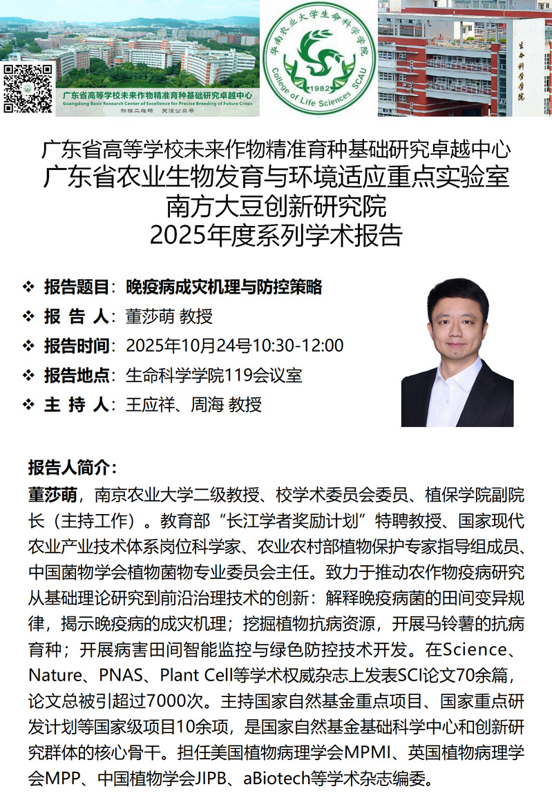 生命科学学院特邀报告——晚疫病成灾机理与防控策略
