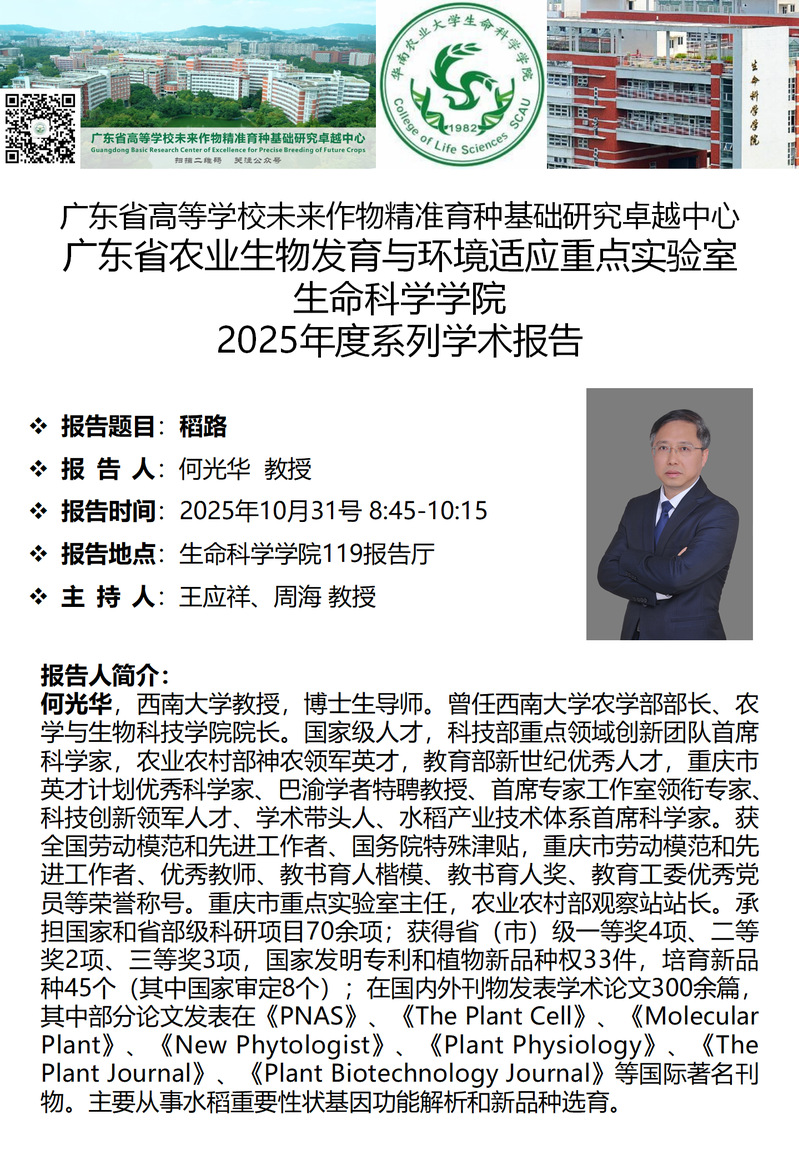 生命科学学院特邀报告——水稻品质耐自然高温的分子遗传学基础
