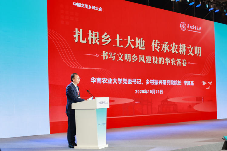 10月29日,中国文明乡风大会在延安举行。大会以“文明,让乡村更美好”为主题,由中央精神文明建设办公室、农业农村部、中共陕西省委、陕西省人民政府共同主办,中共中央政治局委员、中宣部部长李书磊出席并讲话。中央和地方有关单位负责同志,专家学者、青年人才、农民群众、县乡村基层党组织代表等参会。校党委书记李凤亮受邀参会,在主会场活动中以《扎根乡土大地 传承农耕文明 书写文明乡风建设的华农答卷》为题发言,围绕“一卷书、一袭衣、一盏茶”三样“老物件”,分享了华农在文明乡风建设中的“新故事”。