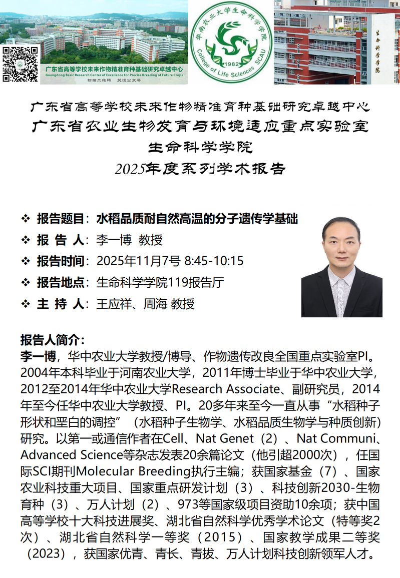 生命科学学院特邀报告——水稻品质耐自然高温的分子遗传学基础