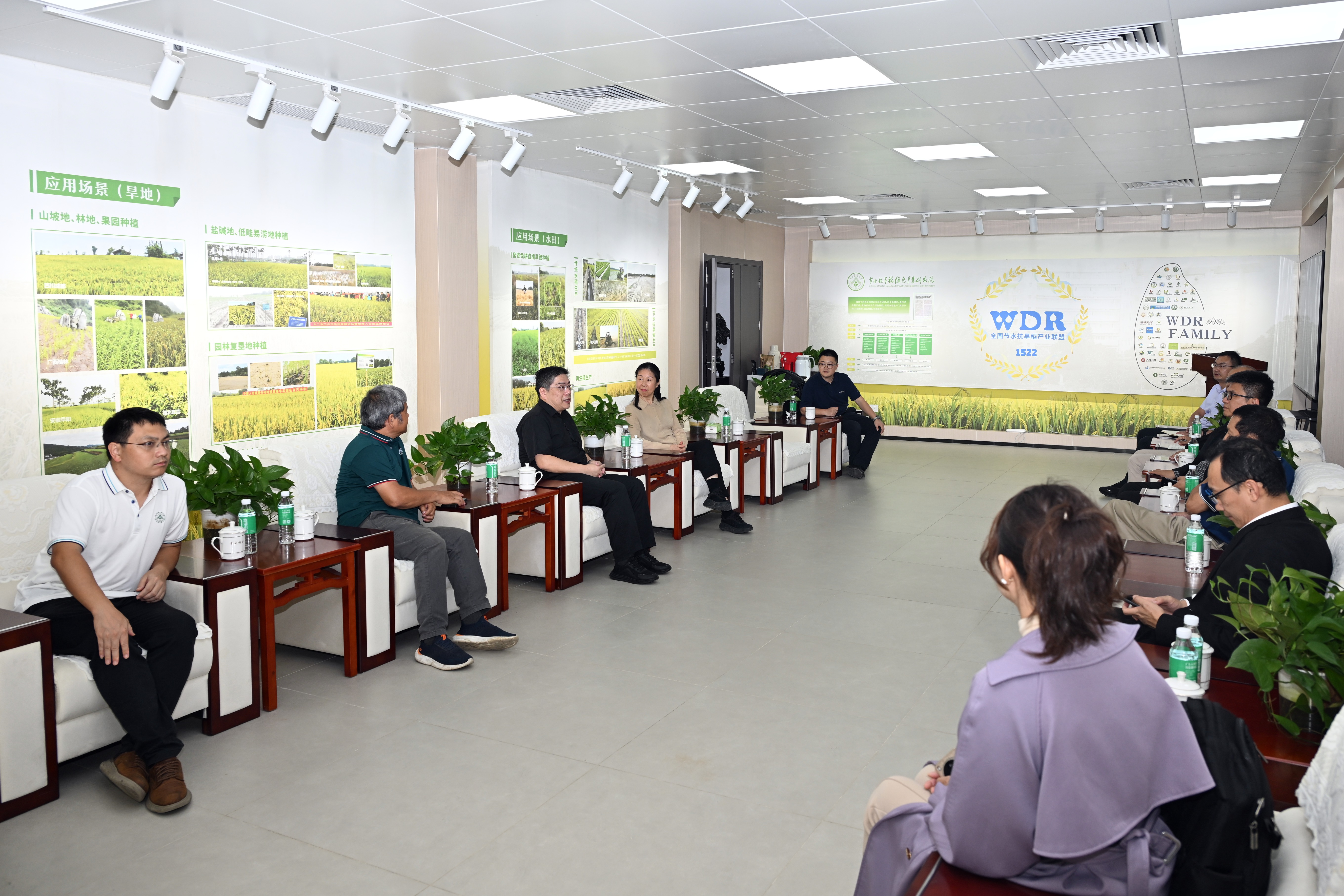 节水抗旱稻绿色产业研究院教授罗利军介绍了节水抗旱稻和研究院的基本情况。与会双方围绕节水抗旱稻、全生物降解地膜技术研发、技术推广应用等内容进行了深入探讨。