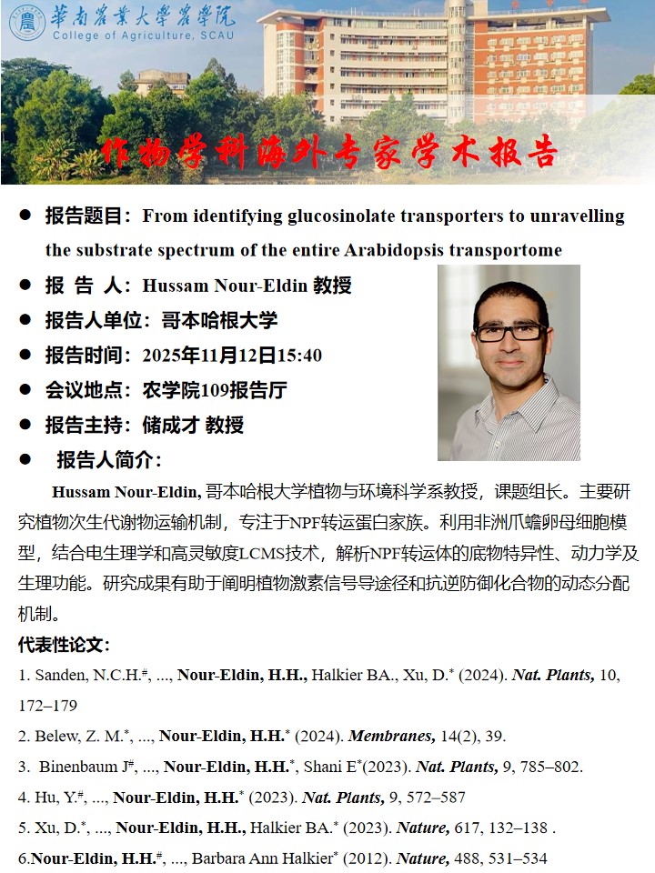 作物学科海外专家学术报告--From identifying glucosinolate transporters to unravelling the substrate spectrum of the entire Arabidopsis transportome