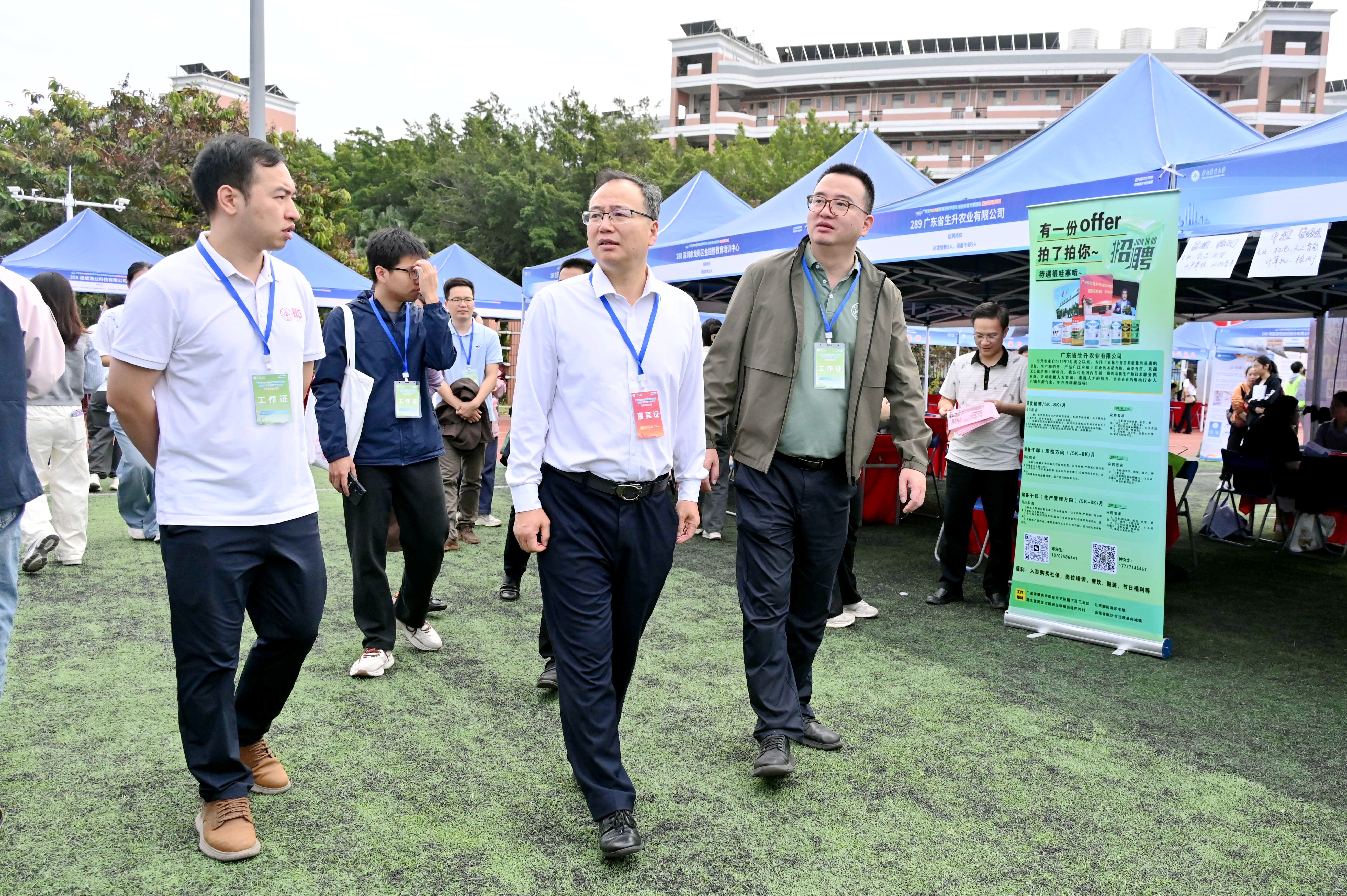 11月15日,由广东省教育厅主办,华南农业大学承办的广东省2026届普通高校毕业生系列供需对接活动综合类农林专场在华山运动场举办。本次活动以线上线下相结合的方式进行,共有358家用人单位参会,提供1.4万余个就业岗位。华农党委副书记丁红星到场指导工作。