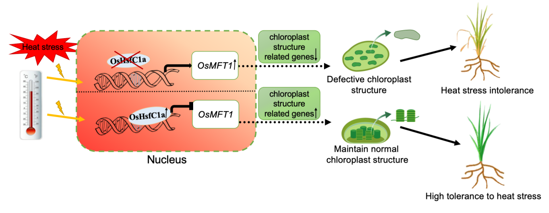 图1 OsHsfc1a-OsMFT1模块调控水稻幼苗耐热性的作用模型