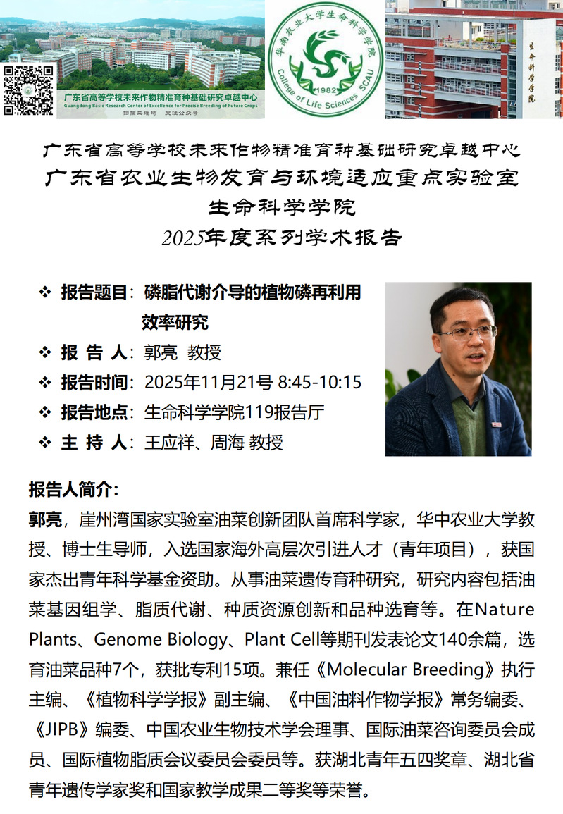生命科学学院特邀报告——磷脂代谢介导的植物磷再利用效率研究