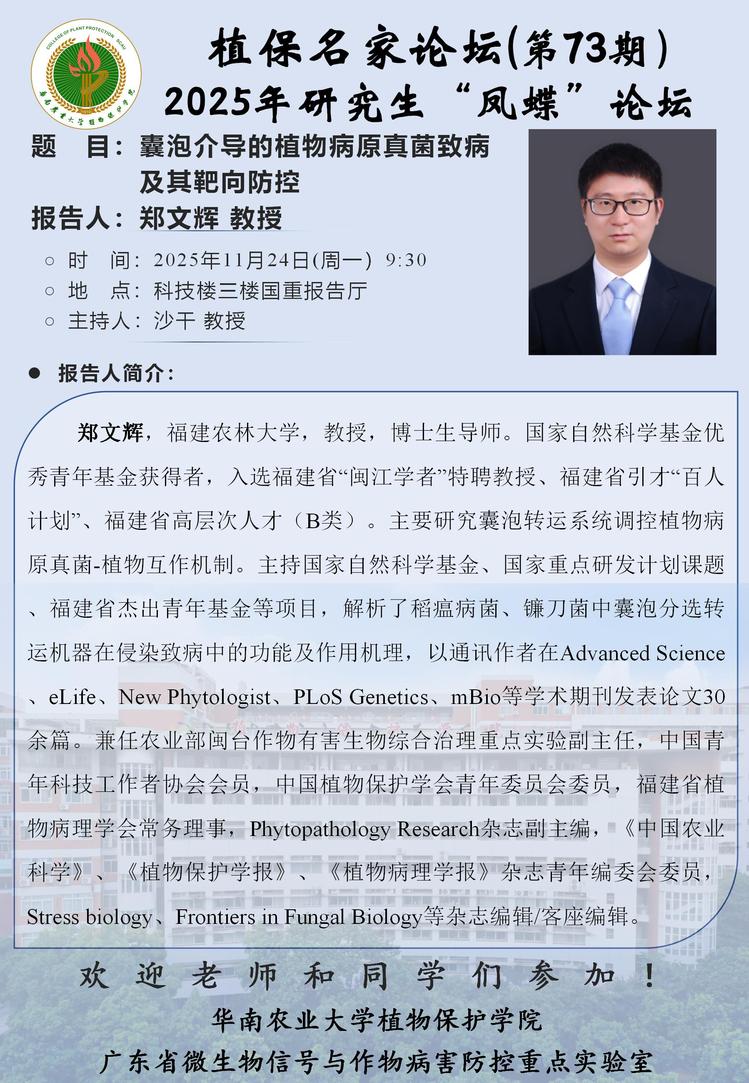 植保名家论坛(第73期):囊泡介导的植物病原真菌致病及其靶向防控