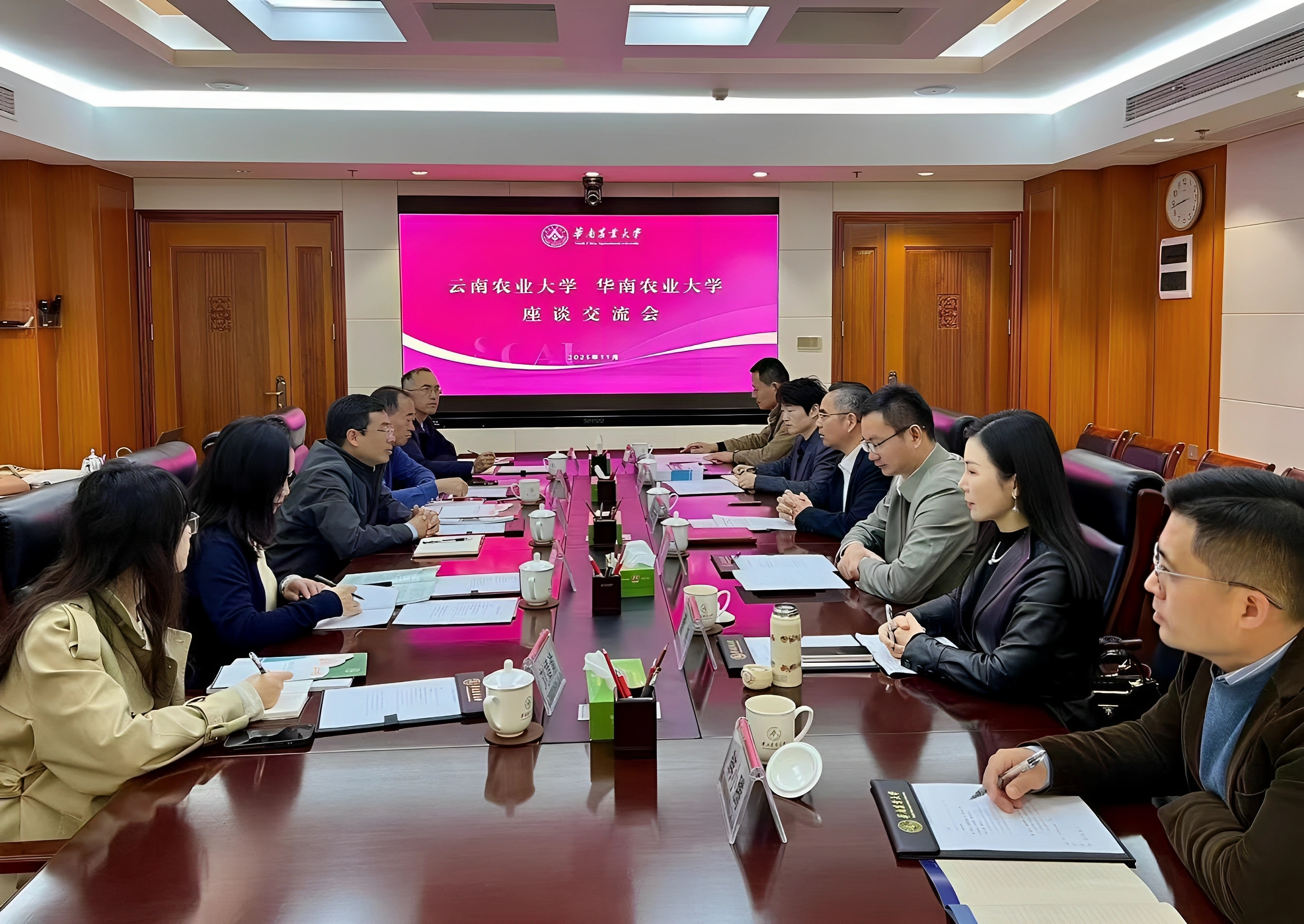 11月21日上午,云南农业大学副校长朱书生一行来访华农,围绕社会服务、科技创新和成果转化等开展调研交流。副校长陈乐天接待来宾并座谈。