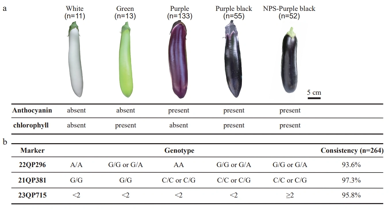 茄子果实颜色丰富多样,其市场价值与消费者认可度深受果皮色素影响。其中,非光敏型品种即使在光照不足条件下仍能保持稳定紫色,解决了传统光敏型品种因遮阳、弱光等条件下导致着色不均的生产痛点。此前,茄子非光敏性着色的遗传基础尚不明确,制约了相关育种进程。