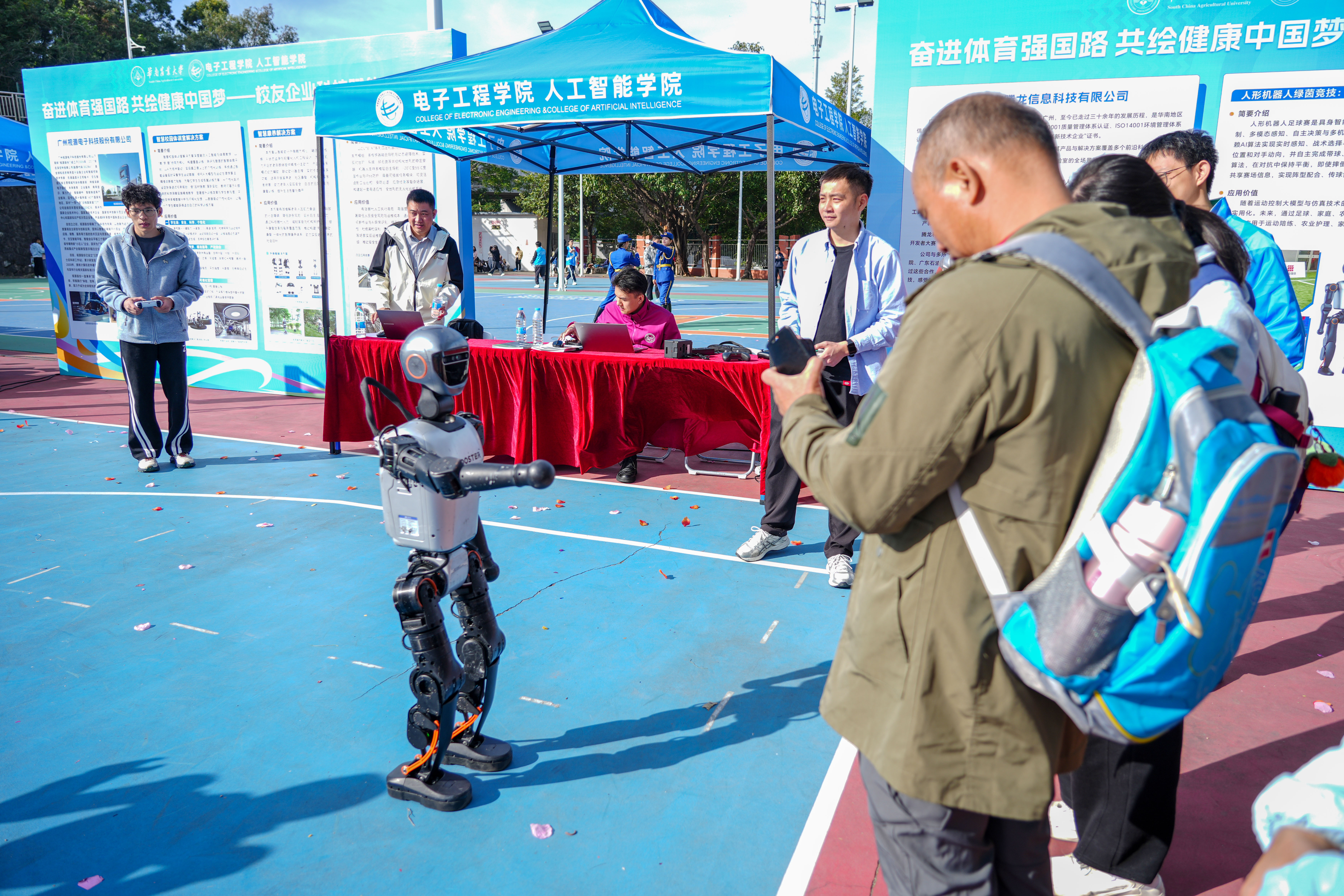 据了解,本届校运会开幕式以“智汇农情·芯动湾区”为主题,设置多个富有象征意义的环节:特别安排十五运会和残特奥会志愿者方阵及116名学生教官组成的彩旗方阵,担任十五运会开幕式引导员的同学再次登场,展现使命担当与青春风貌。比赛期间还举办了“奋进体育强国路,共绘健康中国梦——校友企业科技赋能成果展”,一系列校友企业的优秀产品集中亮相,直观展现了人工智能领域的前沿发展。现场设置的机器人足球、沉浸式3D运动体验、迷你高尔夫、射箭等互动项目,吸引了众多老师同学参观体验。