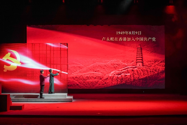 歌曲《假如那么的一天到来哟》、舞蹈《追寻》《泥土高洁》等场景,以高度凝练的艺术语言再现了卢永根的成长和共产党员的高尚情怀,引发观众强烈共鸣。“母与子的时空对话”“稻田里爱的表白”“卢永根的两次发火”话剧表演,生动展现卢永根的人格魅力,强化了观众的情感联结。“向着延安的方向宣誓入党”“将880多万元积蓄捐给教育事业”“华农学子齐声呼喊——这盛世如你所愿”等仪式感拉满的舞台呈现,则展现了信仰力量的代代传递。