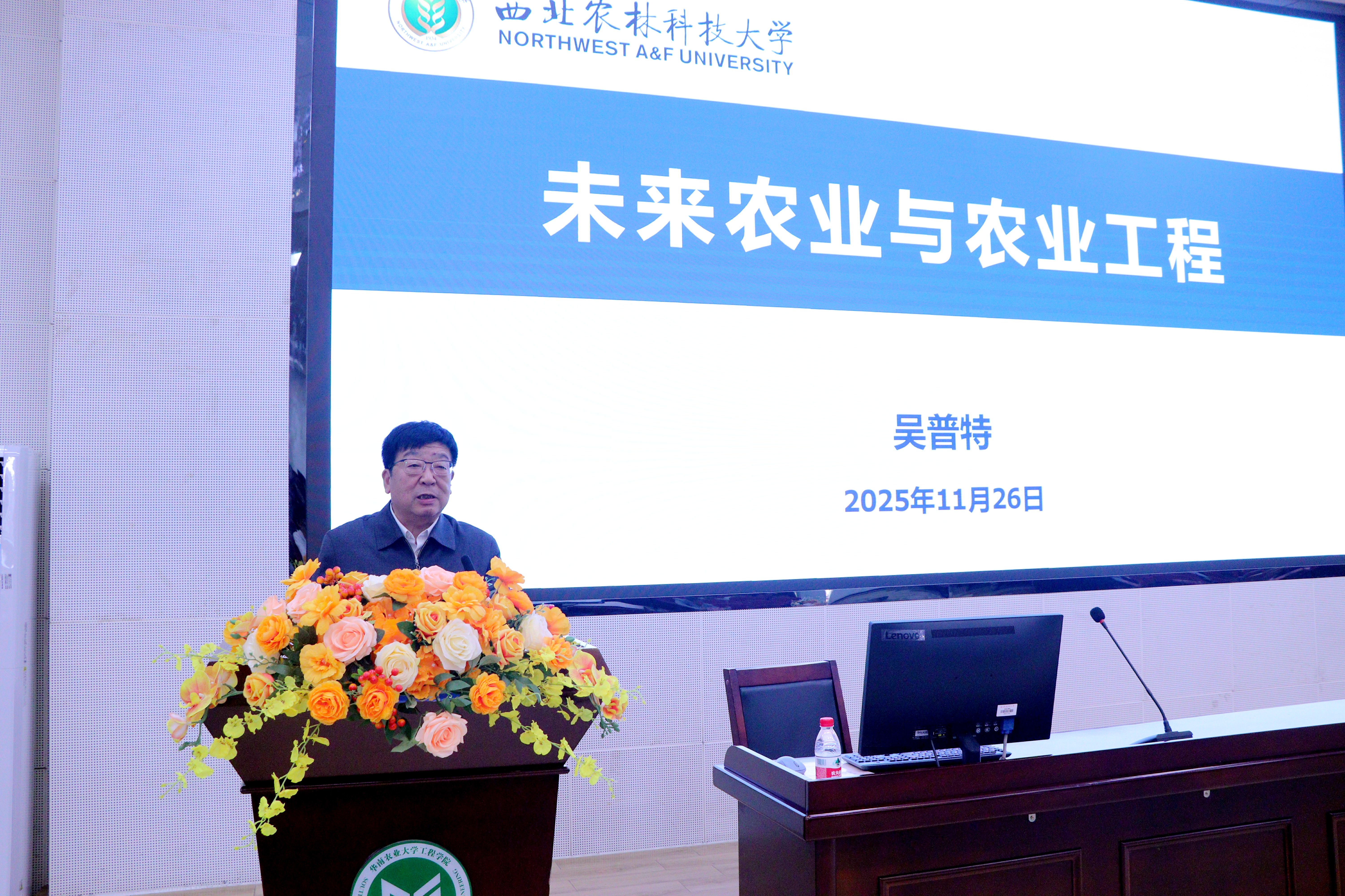 报告会上,吴普特围绕“农业发展面临的挑战”“未来农业特征与趋势”“农业工程内涵与发展”以及“农业工程的科技前沿”四大主题展开系统阐述。他结合自身数十年科研实践,深入剖析了我国农业在水土资源约束与“大国小农”等现实条件下的发展瓶颈和挑战。从三产融合、主体多元经营、绿色发展、健康引领、智能装备、全球配置等方面,吴普特阐述了未来农业的六大特征及发展趋势,并深刻解释农业工程这门交叉学科需要依托工程学、生物学、信息学与管理学等多学科的原理技术,探究环境、装备、设施与农业、生物及水土资源的互作规律。他指出,目前农业工程处于智慧农业工程阶段,数字化和智能化的深度融合推动农业工程的发展。围绕农业工程十大前沿科学问题和十大前沿技术问题,他剖析了农业工程前沿研究方向。