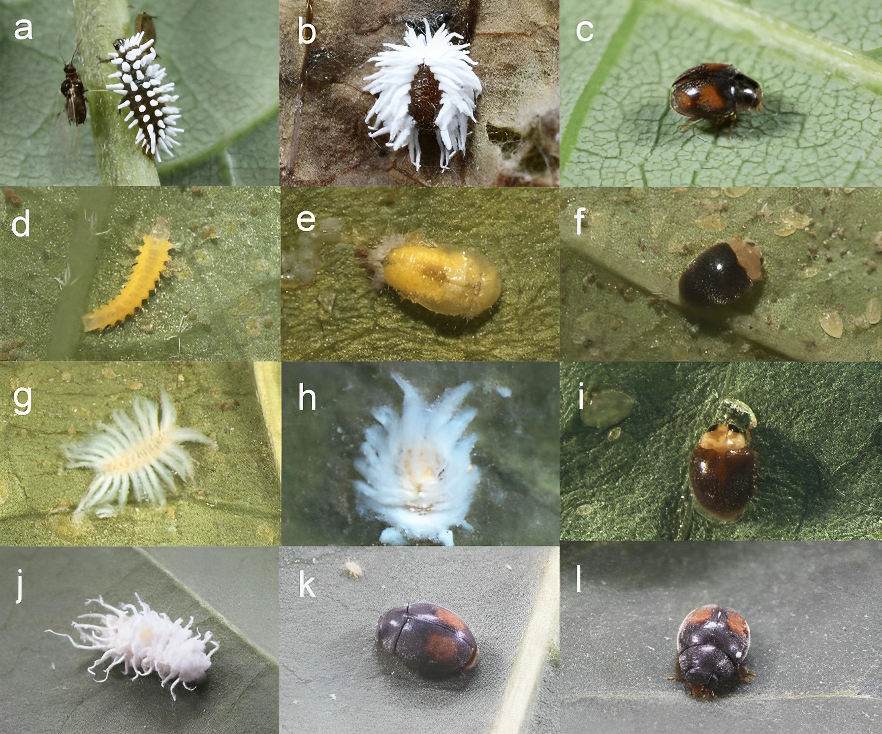 图1 小毛瓢虫族部分代表性类群的幼虫、蛹和成虫