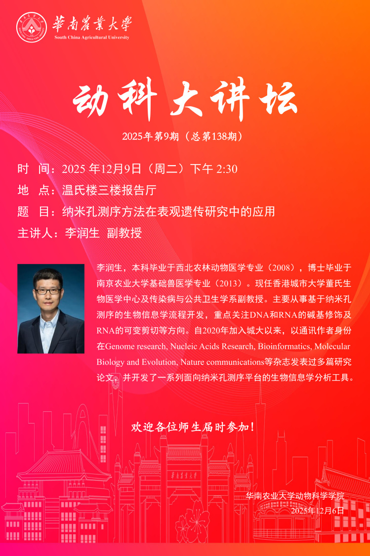动科大讲坛(第138期):纳米孔测序方法在表观遗传研究中的应用