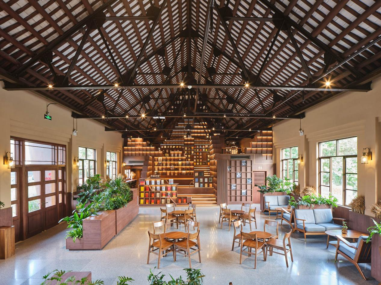 项目概述:项目以国立中山大学石牌旧址建筑乙组膳堂(后为华南农业大学学生第一饭堂)保护修缮与活化再生为设计目标,涵盖整体风貌协调、户外环境再生、建筑本体修缮以及室内空间活化四部分设计内容。项目以整体性和参与性为视角,以风景园林手法主导历史环境更新过程,在校园历史环境中重构自然与文化的相关性,丰富校园社区的生物文化多样性。项目保护了原国立中山大学建筑遗产风貌,再现了校园历史场景,延续了乙组膳堂历史文脉;建筑本体修缮以微介入的方式,基于原真性原则复原了建筑立面形式与空间结构;室内空间活化引入园林意象,打造了多功能复合的室内“书山”文化空间。户外环境再生设计从提升校园公共健康福祉出发,重拾中国传统养生智慧,营造疗愈身心的岭南本草植物康养花园。