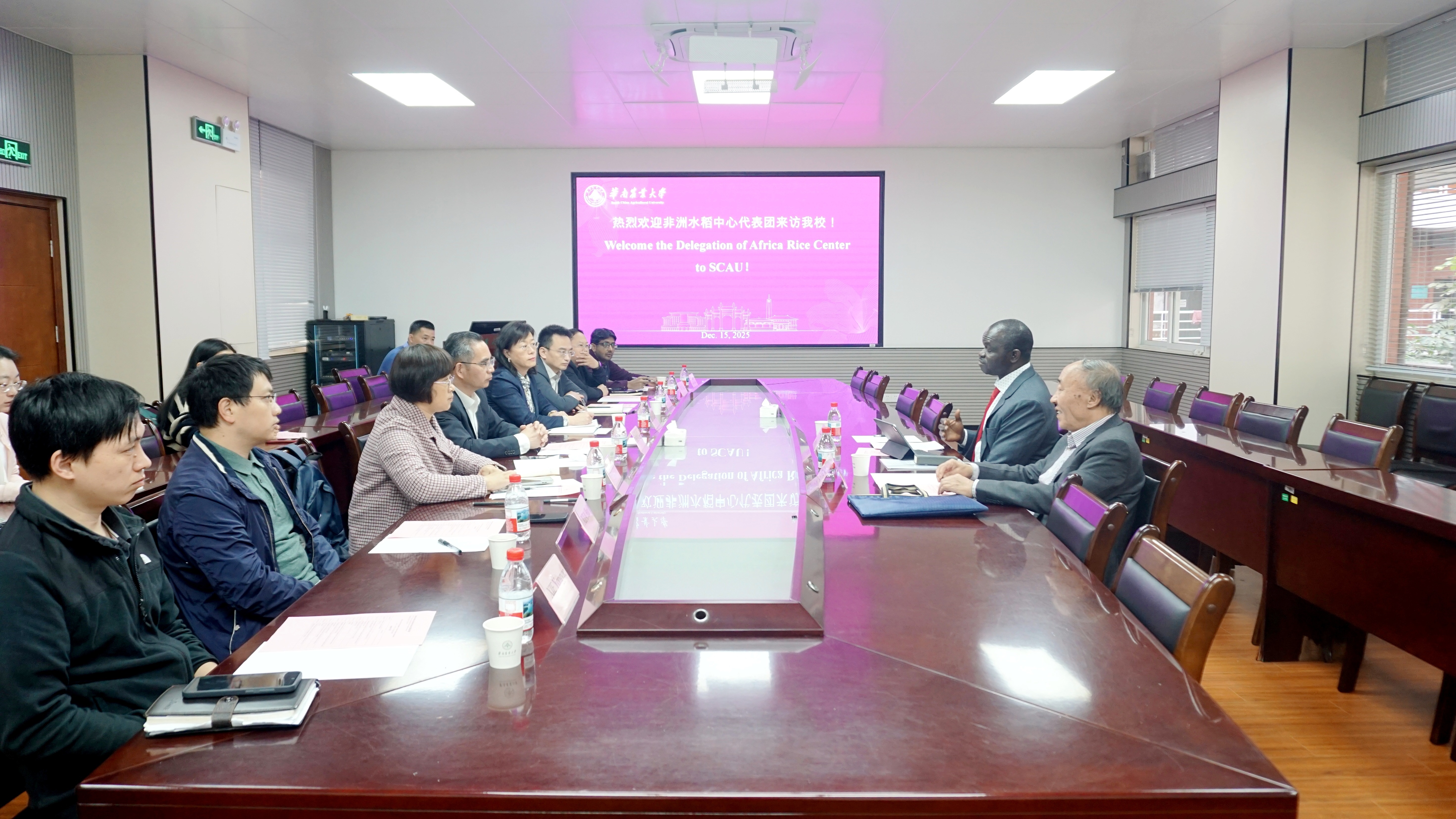 近日,非洲水稻中心总干事巴布卡尔博士访问华南农业大学。学校副校长陈乐天在农学院接待来宾并座谈。