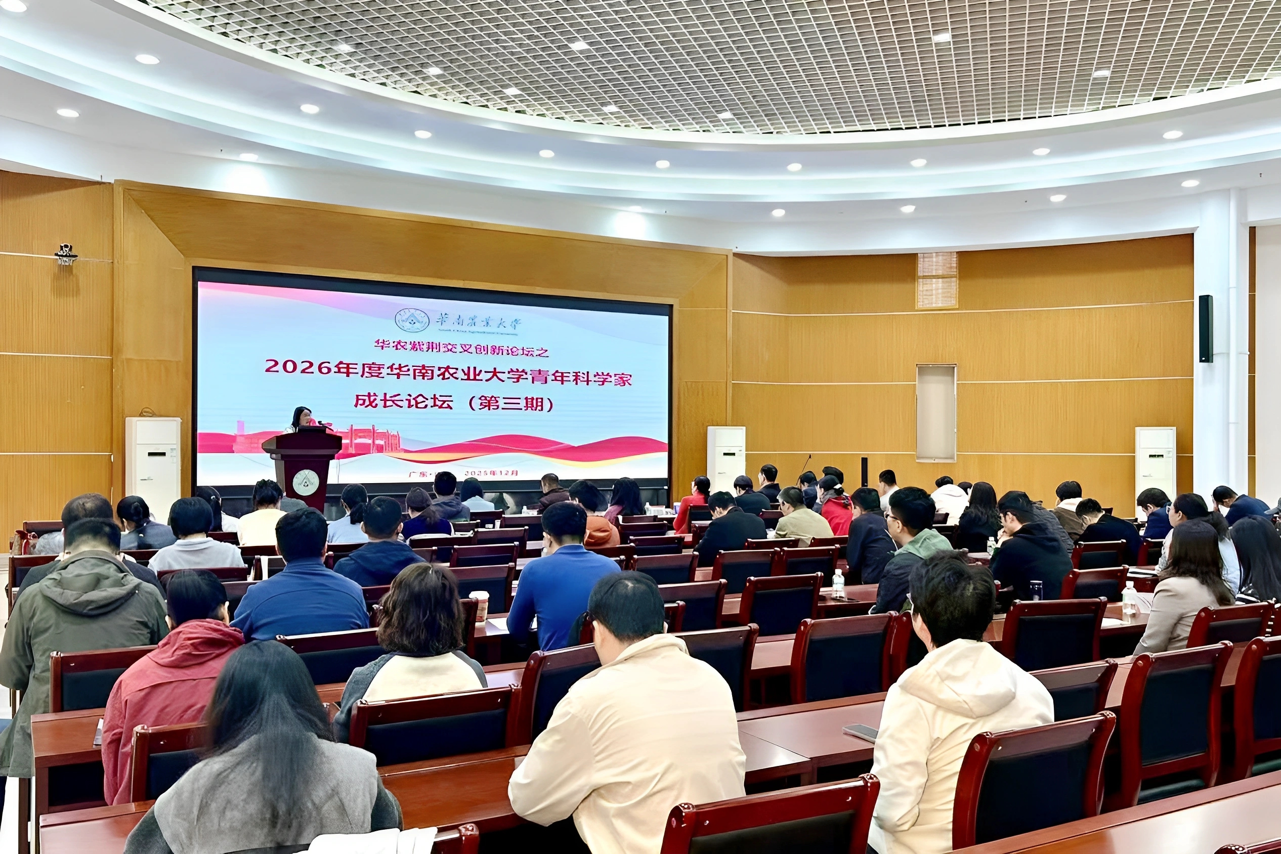 为激发青年学者的科研创新活力,促进学科交叉融合,推动科研新增长点的形成,切实做好2026年度国家自然科学基金项目及人才项目申报工作,12月18日,华农紫荆交叉创新论坛——2026年度第三期青年科学家成长论坛”在科技楼三楼报告厅举行。