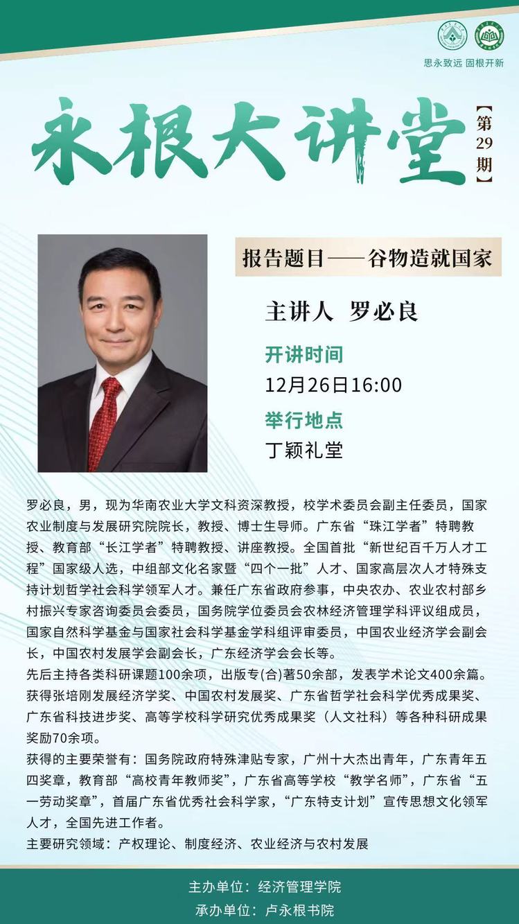 永根大讲堂第29期:谷物造就国家