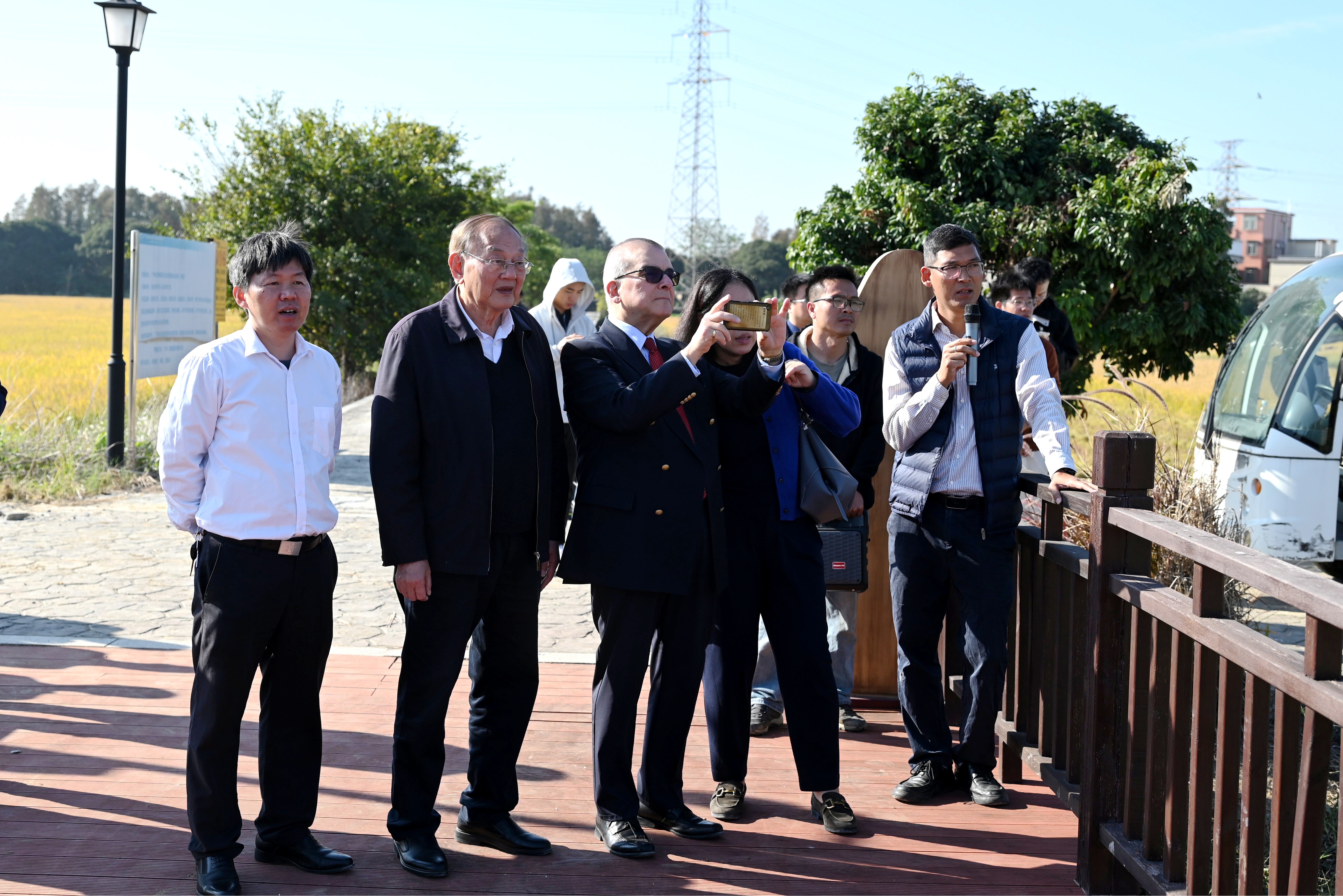 来访期间,葛兴福一行调研了广州市黄埔区大吉沙岛智慧农场、华南农业大学黄埔创新研究院、水稻生产机械化博物馆。在大吉沙岛智慧农场,来宾观摩了田间作业现场,无人驾驶水稻收获机、无人驾驶稻麦播种机、无人驾驶旋耕机、无人驾驶水稻精量穴播机等智能装备依次展示了水稻生产的耕、种、管、收全程无人化作业流程,全链条智能化操作展现了中方智慧农业的实践成果。葛兴福深入了解设备作业精度、环境适应性等关键技术参数,并对华农在农业机械化与智能化融合领域的突破表示赞赏。