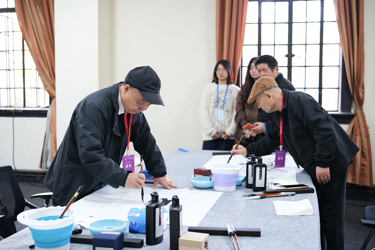 “最让我眼前一亮的是圆形‘框中框’设计的书画展示区,让静态的书画都带上了层次感。”人文与法学学院2025级汉语言文学专业的蔡同学在参观后分享道,“书画作品里的笔墨线条、花鸟意象,都让我感受到了中式艺术对自然、意境的追求。”