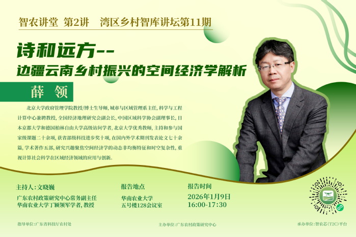 【预告】智农讲堂 第2讲 湾区乡村智库讲坛第11期:诗和远方--边疆云南乡村振兴的空间经济学解析
