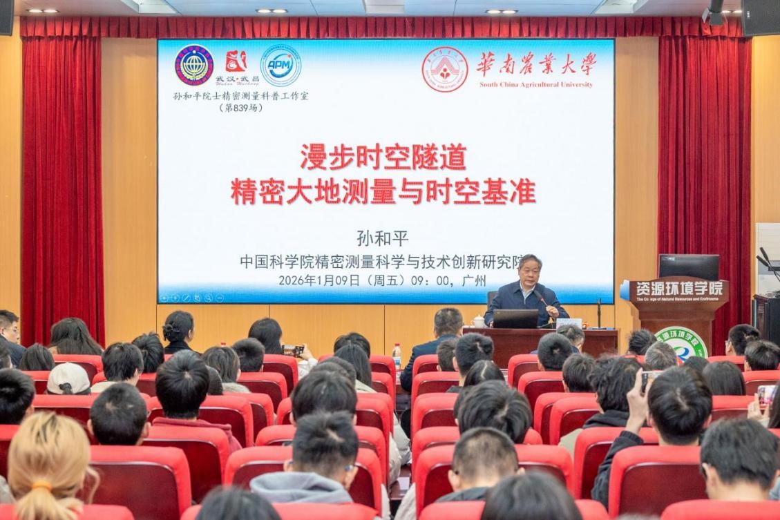 1月9日上午,由资源环境学院主办的“资环低碳农业学术论坛”第79期暨“湾”有引力——孙和平院士学术与科普巡讲第九站举行。中国科学院院士、中国科学院精密测量技术与科技创新研究院研究员孙和平作题为“漫步时空隧道-精密大地测量与时空基准”的学术与科普报告。