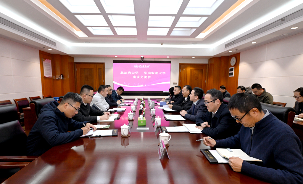 苗剑介绍了北部湾大学的办学定位、学科特色与发展现状。他表示,华农办学历史悠久、底蕴深厚,希望未来与华农加强互动、优势互补,围绕海洋水产、生态环境等领域开展合作,推动师资交流、团队共建与项目合作,促进双方高质量发展。