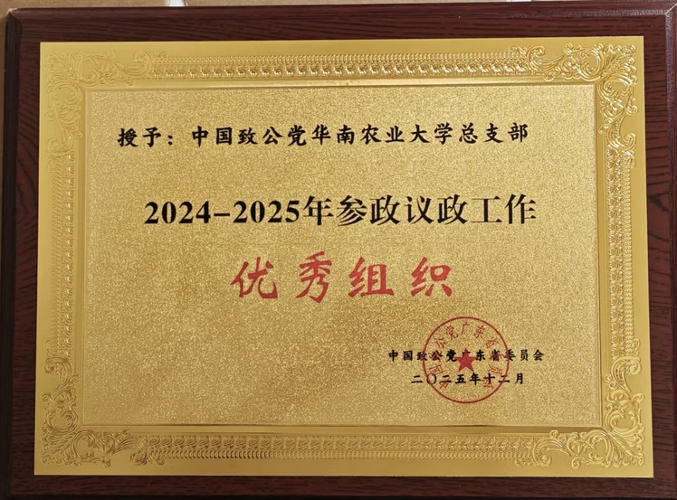 近日,致公党广东省委会公布2024-2025年度表彰名单,致公党华南农业大学总支部荣获“参政议政工作优秀组织”称号,其集体成果《关于构建“强县富民”产业体系推进县域经济发展的提案》被评为参政议政优秀成果,总支党员陈火君荣获“优秀党员”称号,实现组织与个人荣誉双丰收。