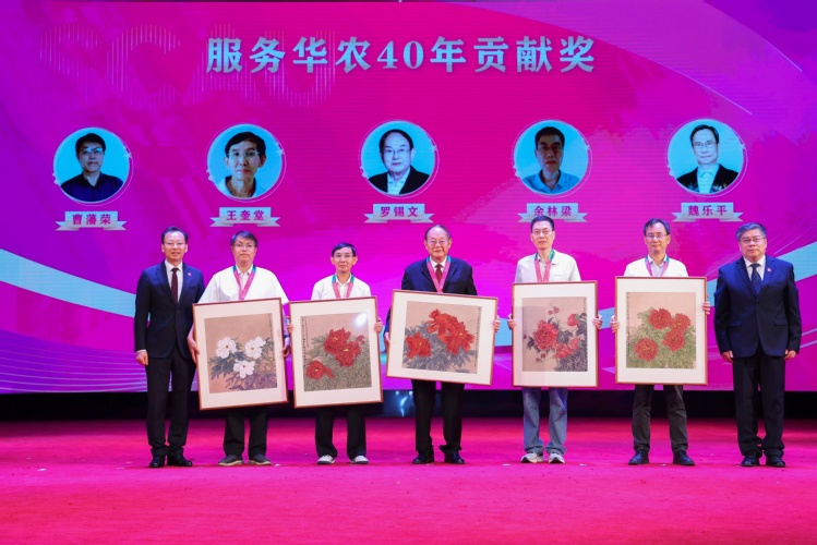 首届“紫荆年度荣誉奖项”颁奖典礼上为服务华农40年的教职工颁奖