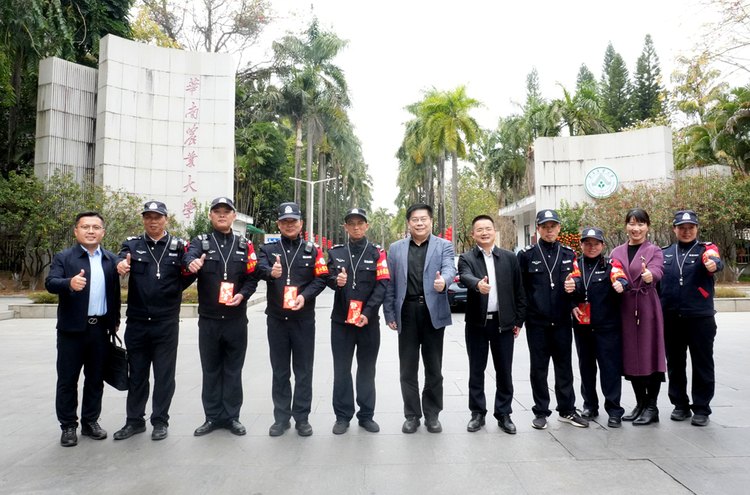 西南门和南门门岗前,校卫队队员们精神抖擞、着装整齐,薛红卫与队员们一一握手,并关切询问执勤情况。“华农的平安,离不开大家的日夜守护,你们是校园安全的第一道防线。”他叮嘱队员们执勤时注意防寒保暖、劳逸结合,继续以严谨细致的工作作风,筑牢校园安全屏障。