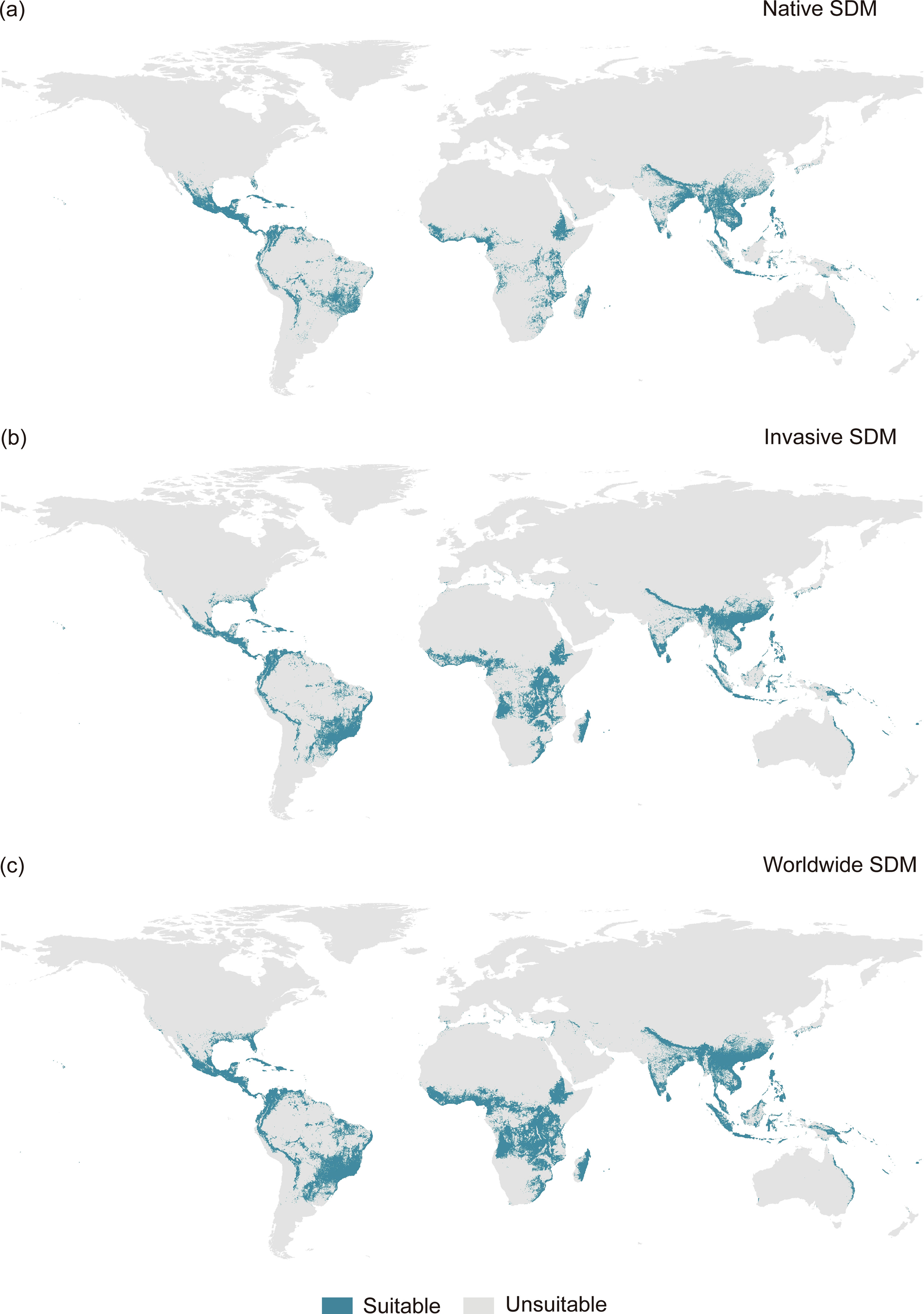 研究二:全球尺度揭示肿柄菊(Tithonia diversifolia)入侵格局与扩散潜力