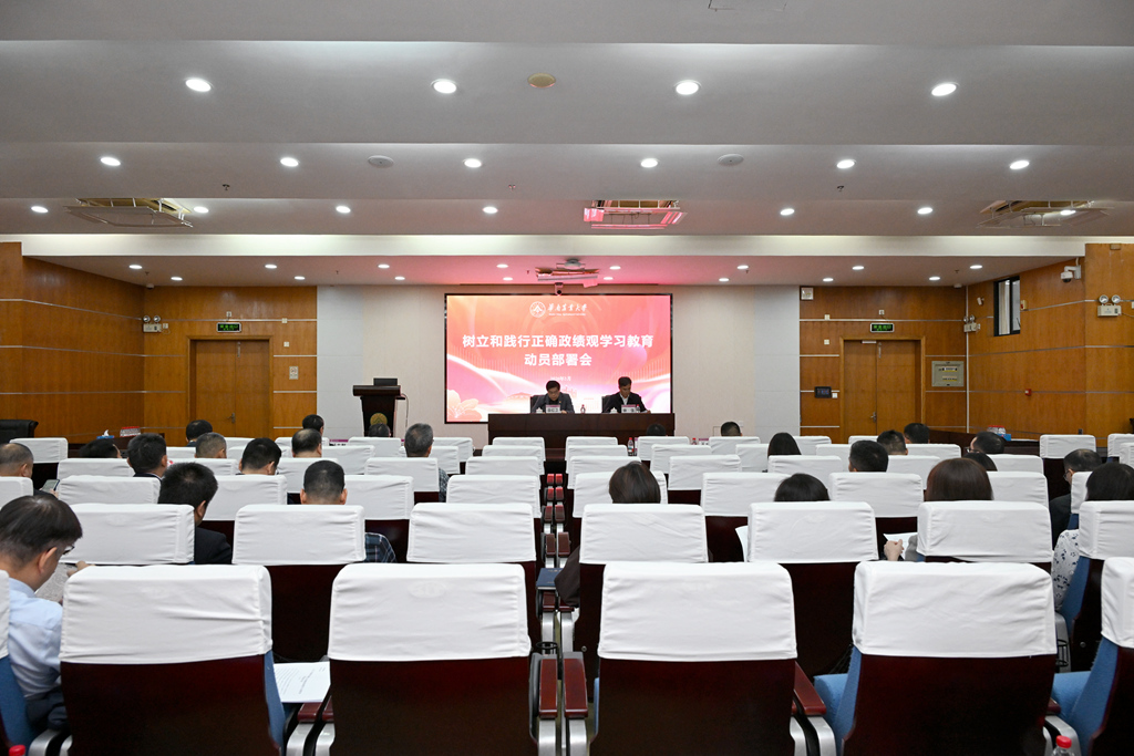 会议指出,开展树立和践行正确政绩观学习教育,是加强干部党性锤炼、筑牢思想根基的迫切需要,是密切党群干群关系、凝聚发展合力的内在要求,是推进全面从严治党、营造风清气正政治生态的重要举措,更是推动学校事业高质量发展、实现“一流”建设目标的现实需要。全校各级党组织和全体党员、干部要深刻认识本次学习教育的重大意义,切实提高政治站位,以坚定拥护“两个确立”、坚决做到“两个维护”的高度,切实增强抓好学习教育的政治自觉、思想自觉、行动自觉;要全面把握本次学习教育的目标要求,深刻理解、准确把握、全面落实“立党为公、为民造福、科学决策、真抓实干”的总要求,一体推进学习研讨、查摆问题、整改整治、建章立制、开门教育等重点措施,确保学习教育走深走实;要切实强化组织领导,压实工作责任、坚持统筹兼顾、注重宣传引导,确保学习教育取得实效。