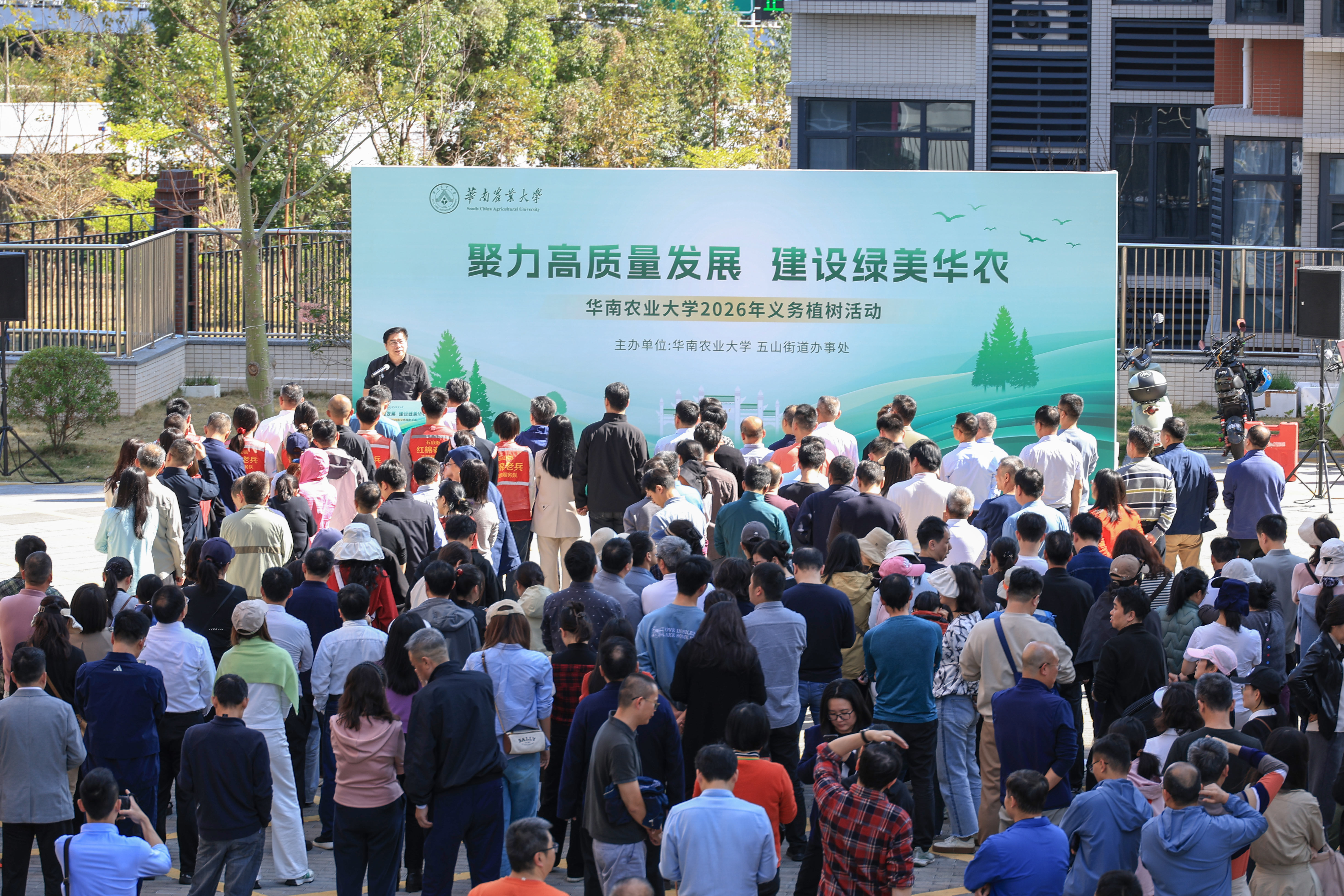薛红卫表示,本次植树活动是华农师生践行习近平生态文明思想的生动体现、积极参与建设绿美广东的具体行动,也是推进大美华农“以绿育人、以景化人”的重要举措。他指出,学校将进一步发挥优势、统筹资源,将生态文明建设融入办学血脉,把服务绿美广东、助力乡村振兴作为“双一流”建设的战略支点。紧密结合2026年“攻坚跨越”主题,师生们要在劳动中体悟“善为”之智、“有为”之责,把绿色理念融入日常、化为行动,推动学校人才培养、科技创新与社会服务协同跃升,深度服务“百千万工程”“绿美广东”生态建设,助力学校“双一流”建设和高质量发展。