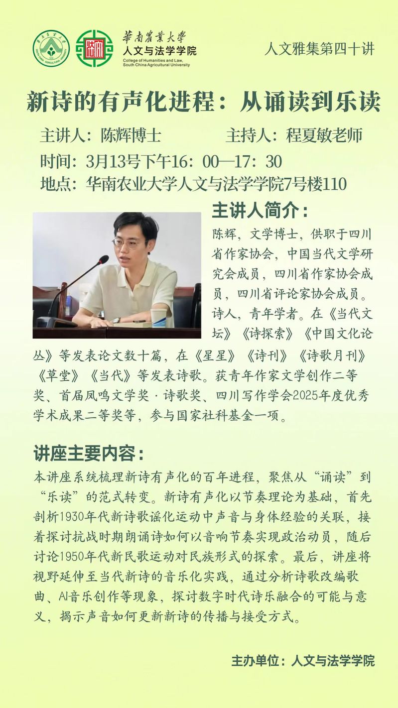 人文雅集第四十讲|新诗的有声化进程:从诵读到乐读