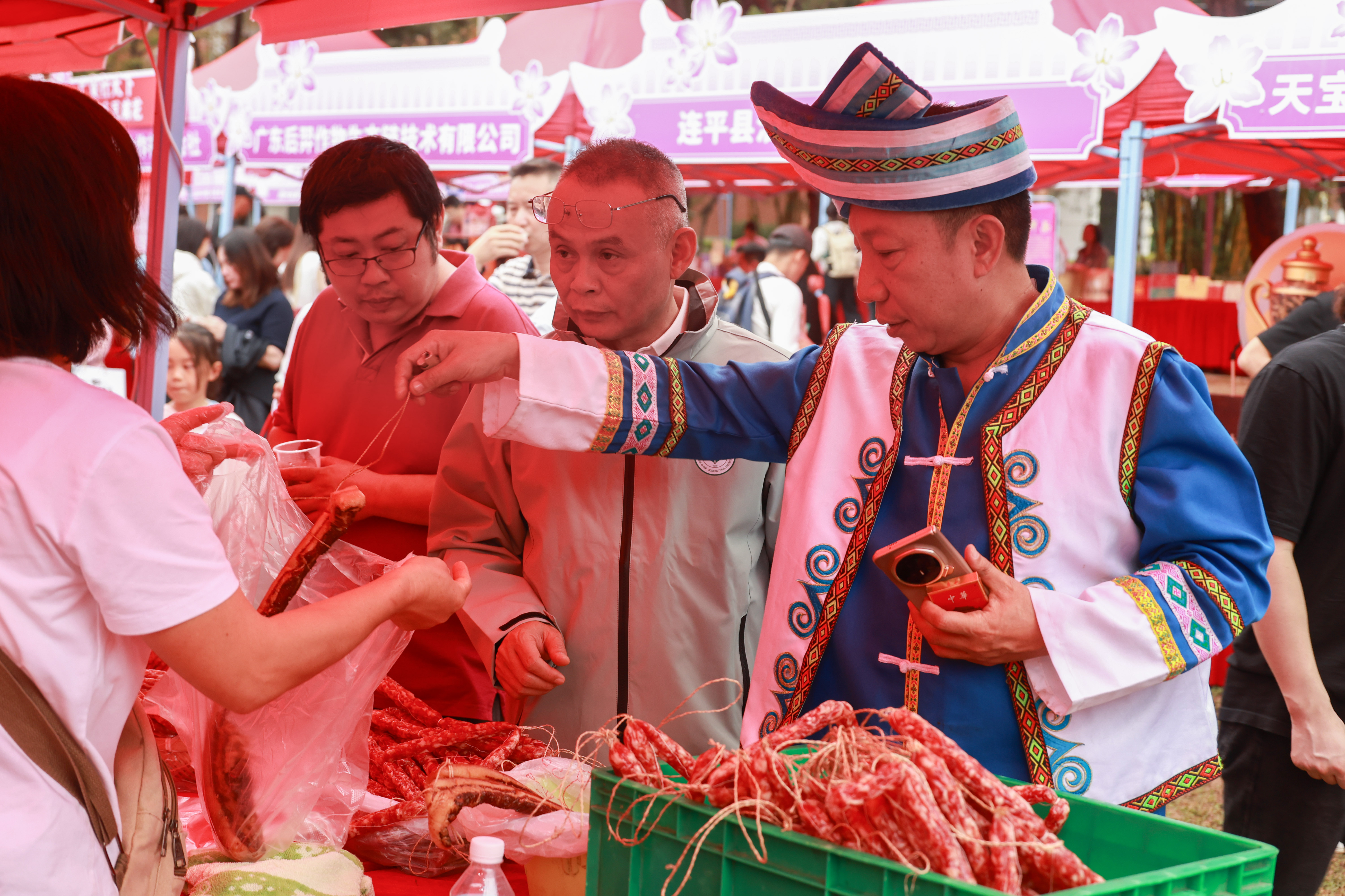 活动现场设置五大省域品鉴区及200余个“头雁”专属展位,荔枝、化州橘红、新会陈皮、石斛、黄精、单丛茶等优质农货直供现场。参观者与“头雁”面对面交流,品鉴选购气氛热烈。