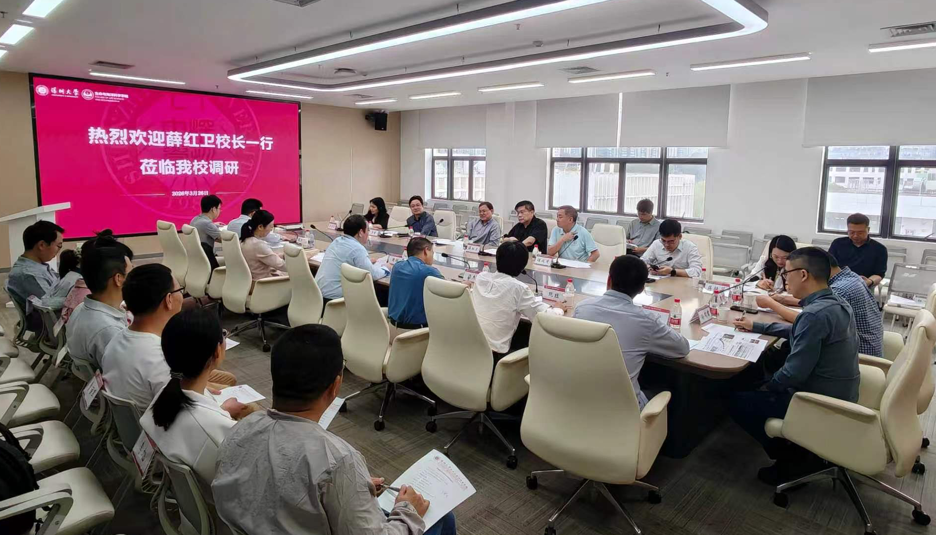 3月26日,校长薛红卫率队赴深圳,调研深圳市光明区华农现代农业研究院建设情况,并走访深圳大学,就联合共建重大科研平台开展深入交流。