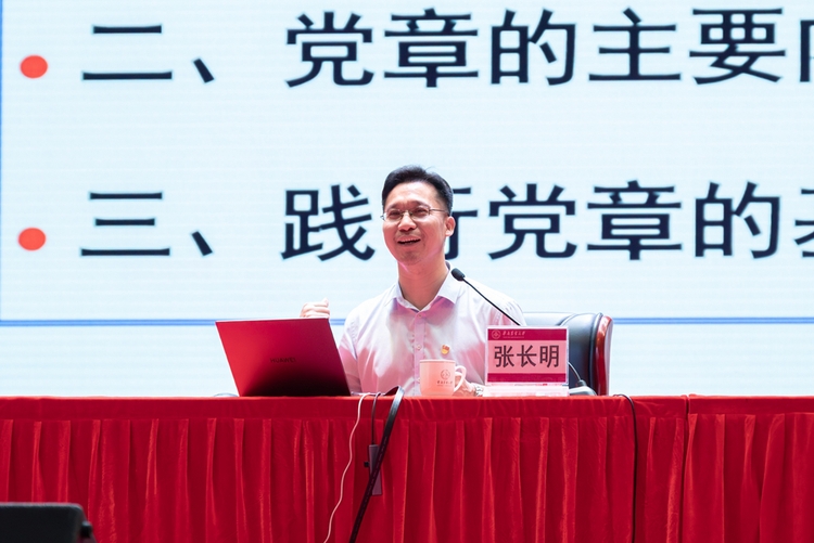 开班典礼后,省委党校副教授张长明讲授题为《学习贯彻<党章> 做合格共产党员》的开班第一课。他从学习党章的重要意义、党章的主要内容、践行党章的基本要求三个方面,深入浅出地阐述如何学习贯彻党章,如何做合格共产党员,并结合党史中的案例与新时代先进典型,生动讲解了如何将党章的规定内化于心、外化于行,引导学员要进一步端正入党动机,牢记初心使命,为实现中华民族伟大复兴的中国梦贡献自己的青春和力量。授课内容翔实,学员们反映热烈,送上阵阵掌声。